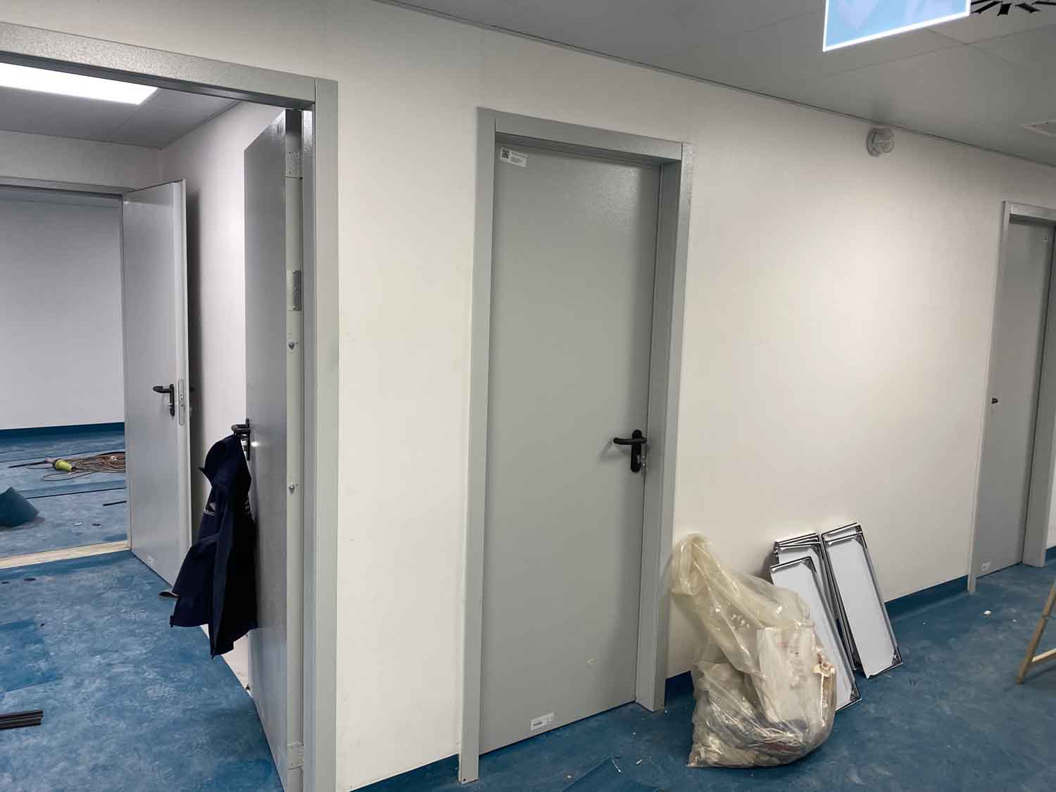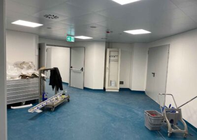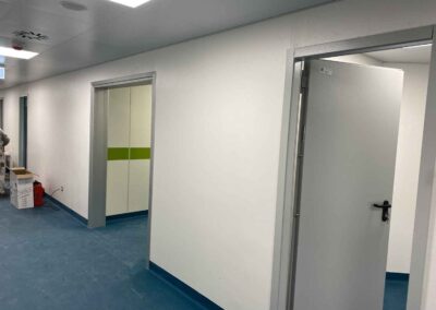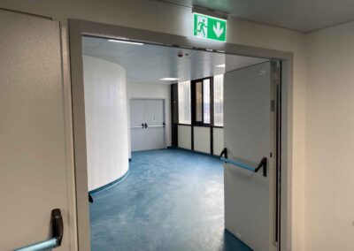 Per l’Ospedale di Bacoli ci siamo occupati della fornitura e installazione di porte di sicurezza in tutto il reparto di chirurgia del secondo piano, posa in opera di porte tagliafuoco e compartimentazione dei vari locali.